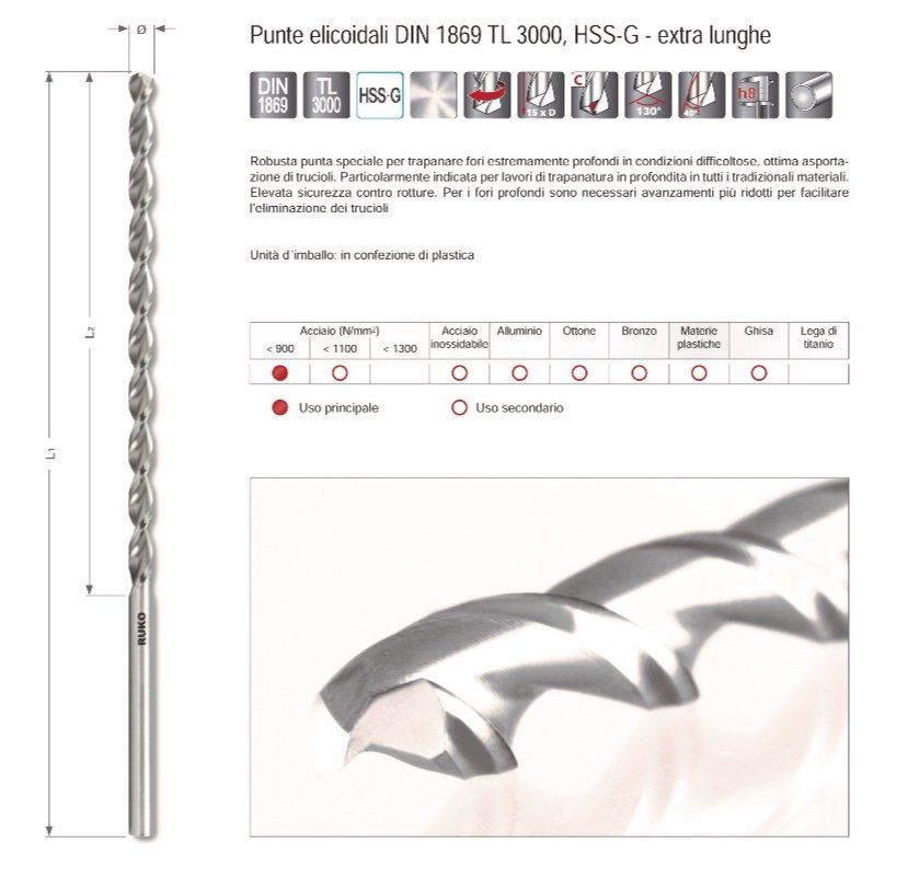 - Punte elicoidali DIN 338 tipo N Lunghe ed Extra-Lunghe