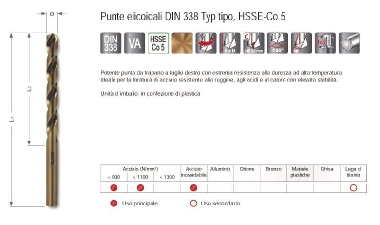 - Punte elicoidali DIN 338 HSSE - Cobalto 8