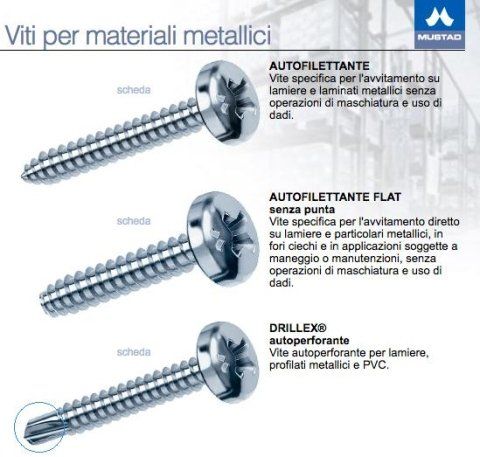 Abbiamo disponibili tutti i tipi di Autofilettanti, sia Testa Cilindrica, Testa Svasata e Testa Esagonale.